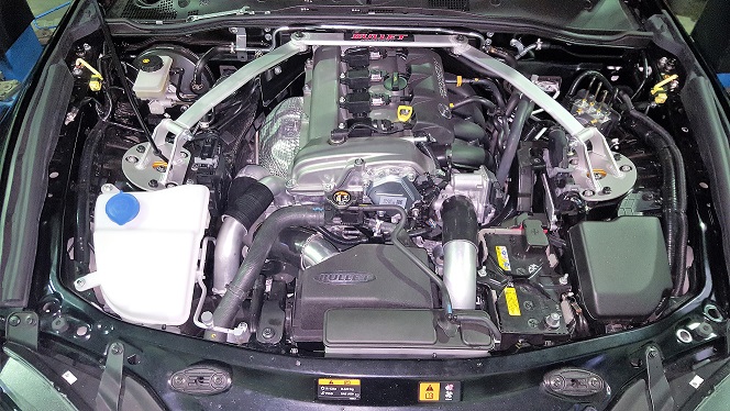 Designed to suit an internally standard engine, the Intercooled Bullet MX5 kit reliably increases power from the factory 83kw at the wheels up to approximately 136 kw! This is a gain of over 50% and is achieved with only 6psi of boost pressure. Additional power increases to over 160kws can be made with the fitment of Cold air induction, High flow Extractors and exhaust and a slight increase in boost pressure to 8psi. The power delivery from the Rotrex Supercharger is extremely smooth and feels like a factory installation. With unmatched boost response and silent operation, the Rotrex is THE centrifugal supercharger to have. It really does turn the MX5 into an exciting well balanced sports car!